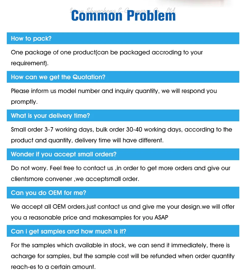 For products in stock, we can ship it within 7 days after receiving your payment. For OEM order production time is 20-35 days after confirmed every details. |