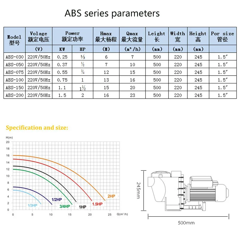 New Plastic AQUA Swimming Pool Pump Stock 1HP 2HP 3HP Water Pump With Filter Basket